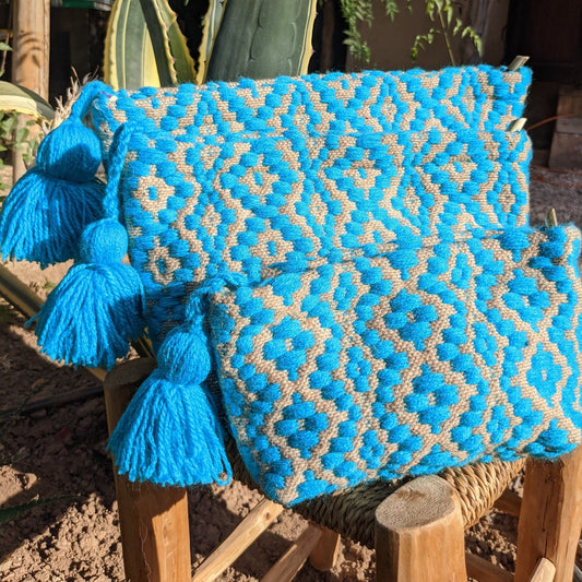 Chacha d'amour | sac pochette en étoffe berbère tissée Bleu